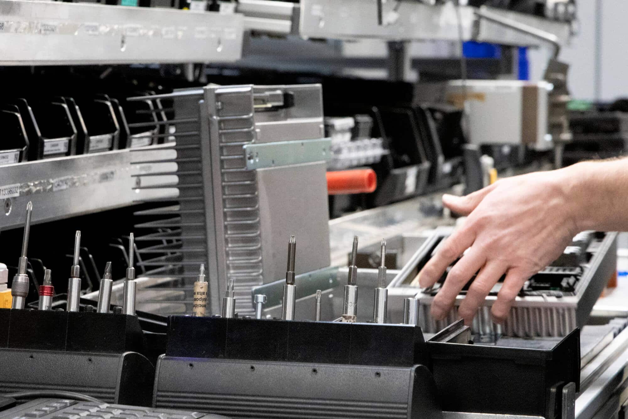 Das Werk in Ruitz (Hauts-de-France) vereint die Montage der BASECAMP®-Stationen auf einer Fläche von 15.000 m². Jede Einheit durchläuft vor dem Versand ein umfassendes Prüfprotokoll: Leistungstests, Überprüfung der IP54-Schutzart und Validierung des BMS-Systems.